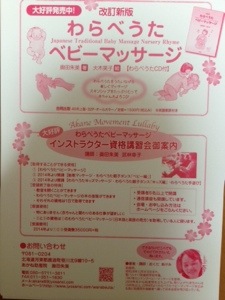 今、帰りの新幹線の中でブログを書いてます。今日は、わらべうたベビーマッサージ資格講習会が東京で開催されました。